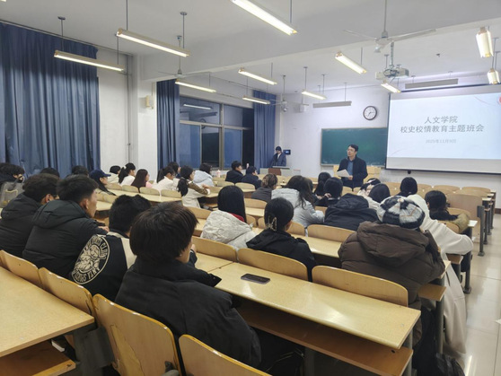 13为引导新生深入了解学校发展历程,传承弘扬学校精神文化,11月9日晚,人文学院2025级各班于7号教学楼同步召开校风建设专题班会。此次班会由各班班主任主持,2025级全体学生参与。