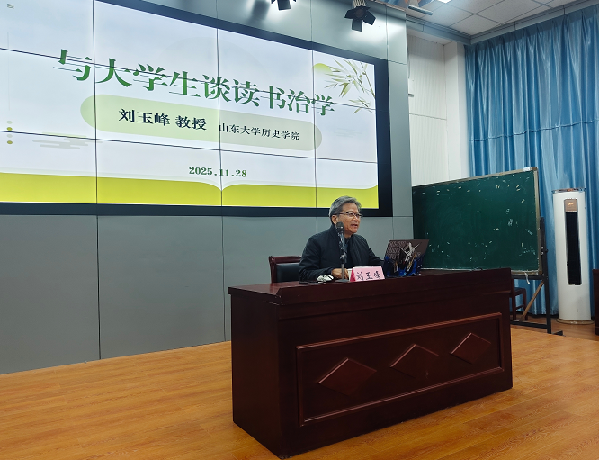 1011月28日上午,山东大学历史学院博士生导师刘玉峰教授应邀来到我院,为师生带来一场题为《读书治学漫谈》的精彩讲座。本次讲座围绕健康生活、读书治学方法与学位论文写作等主题展开。