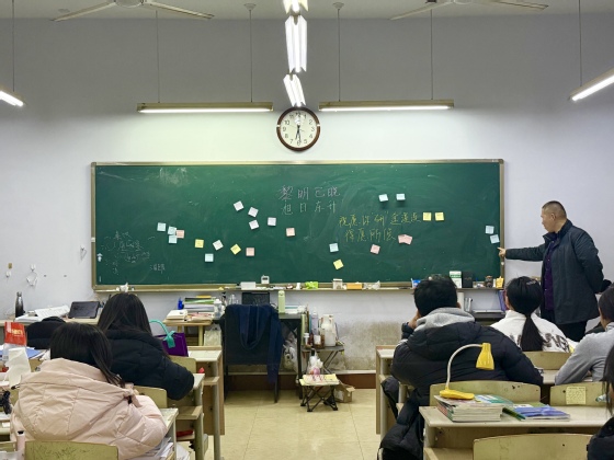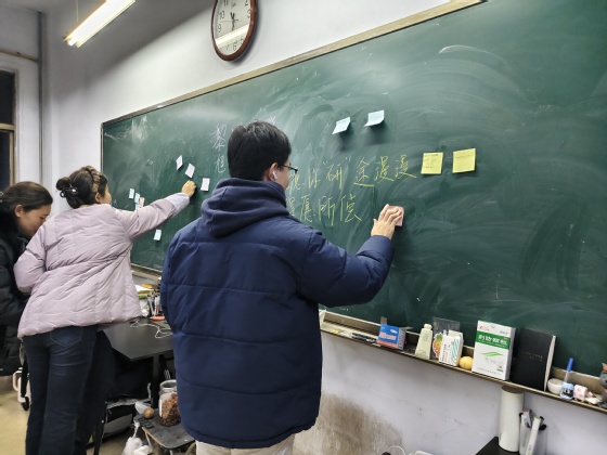 活动伊始,指导教师结合近年考研动向,围绕备考策略、复习规划和心理调适等内容展开分享,并从答题技巧到时间管理给出具体建议,鼓励同学们保持专注、平稳的心态,扎实走好备考每一步。随后进行的“研途心愿墙”环节,伴随轻柔的音乐,同学们执笔写下,既有对未来的憧憬,也坦然记录下备考的焦虑与困惑:“每天时间总不够用”“担心复习不全面”“怕辜负期待”……一张张彩笺渐渐贴满黑板,那些真实的情绪与愿望相互映照,也在分享与倾诉中悄然转化为了前行的勇气。现场氛围温暖而真挚,笔尖之下,是青春拼搏的真实印记。寄语环节,老师们走到学生中间,与大家亲切交流:“注意调整节奏,劳逸结合”“焦虑是难免的,重要的是学会与它共处”“咱们一步一步来,学院始终支持你们”……老师们的话语恳切而充满力量,为这段奋斗之路注入温暖与信心。