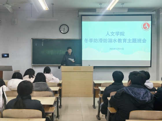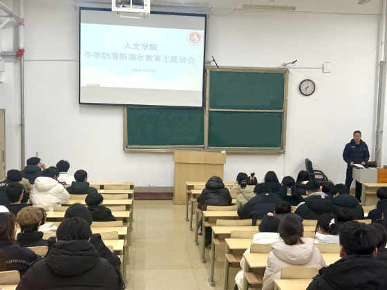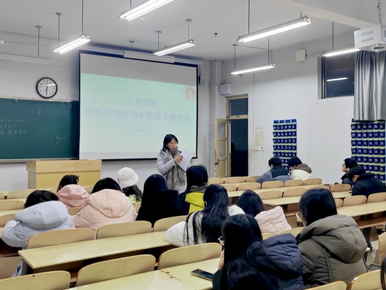 11为提升学生冬季安全意识,积极应对近期寒潮天气,12月21日晚,人文学院组织各班级于7号教学楼同步开展冬季防滑防溺水教育主题班会,本次班会由各班班主任主持,人文学院全体学生参加。