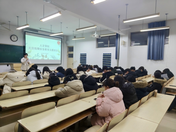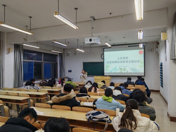 20为切实增强人文学子的安全防范意识,筑牢假期安全防线,12月28日,人文学院组织各班级于7号教学楼同步开展元旦假期安全教育主题班会。本次班会由各班班主任主持,人文学院全体学生参加。