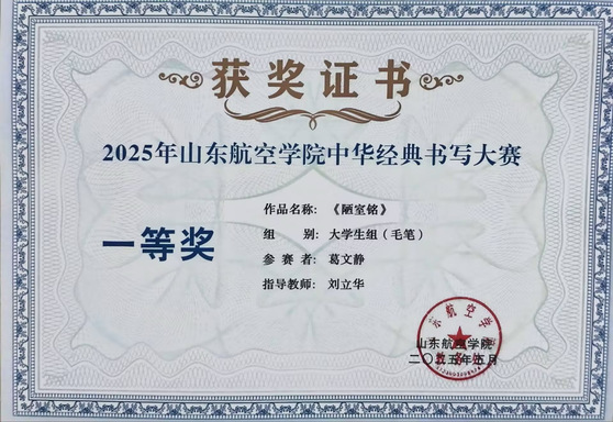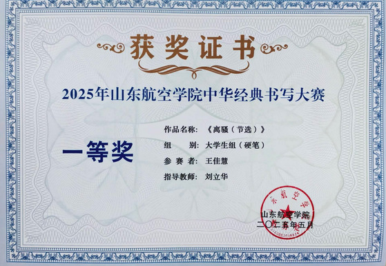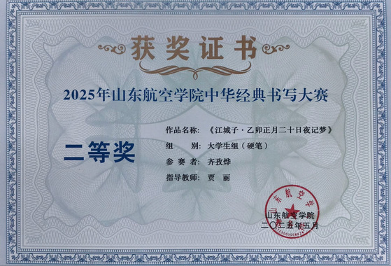 6.2025年山东航空学院中华经典书写大赛一等奖2项、二等奖1项