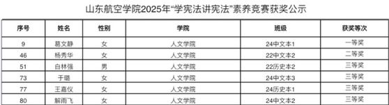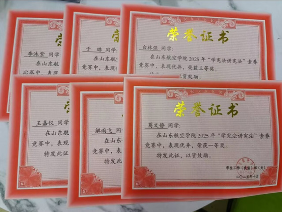 2.山东航空学院2025年“学宪法讲宪法”素养竞赛一等奖1项、二等奖1项、三等奖4项