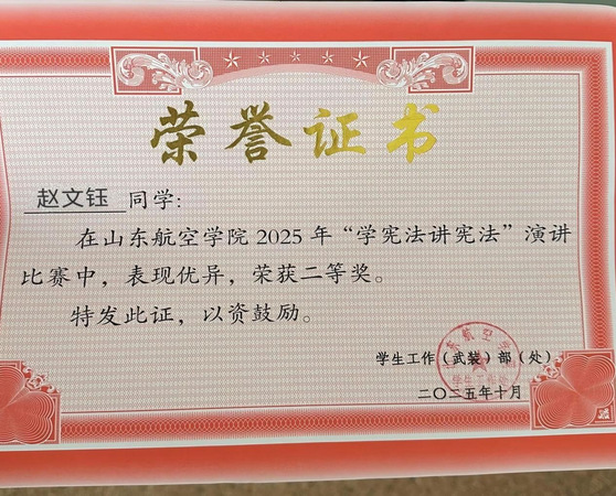 3.山东航空学院2025年“学宪法讲宪法”演讲比赛二等奖1项、三等奖2项