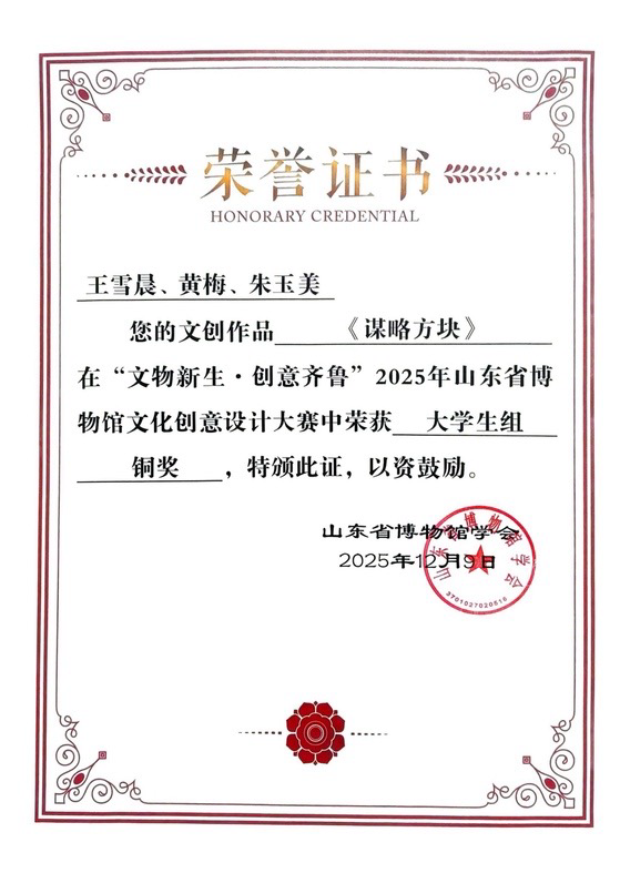 3.在“文物新生·创意齐鲁”2025年山东省博物馆文化创意设计大赛中,获大学生组铜奖1项