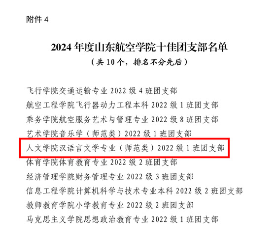 10.人文学院22中文本1班获得2024年度山东航空学院十佳团支部称号