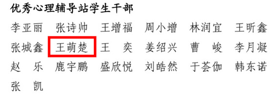 4.2023级王萌楚同学获评山东航空学院2025年525心理健康主题教育活动优秀心理辅导站学生干部