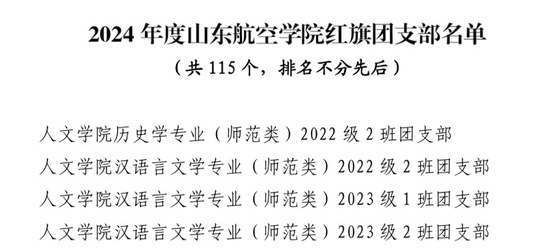 9.人文学院22历史本2班等4个团支部获得2024年度山东航空学院红旗团支部称号