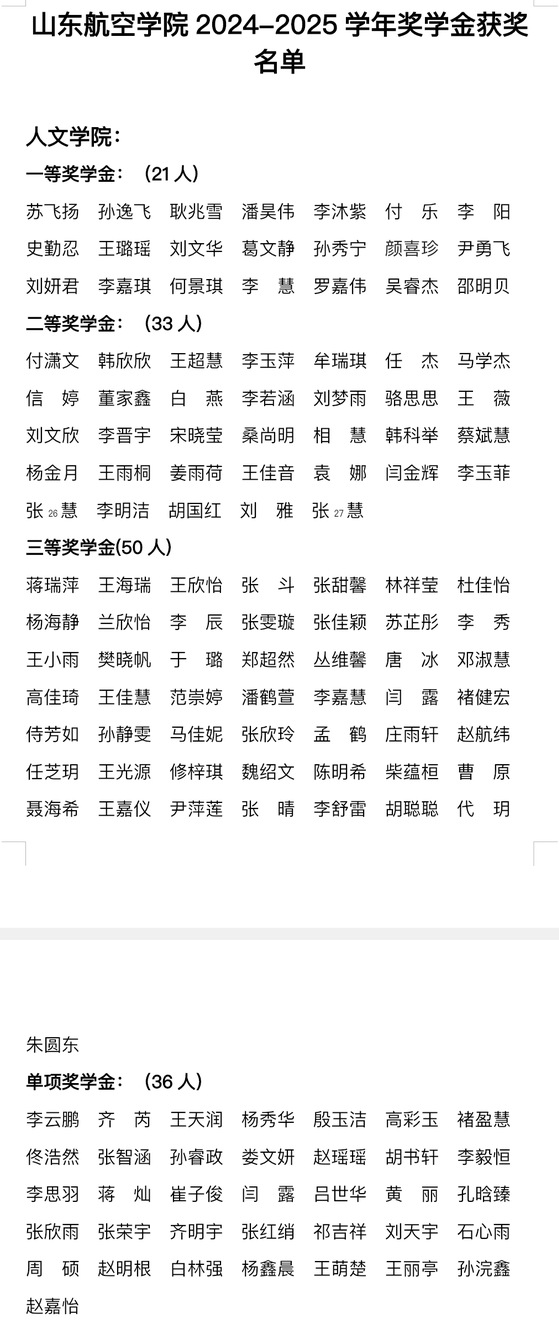 2. 山东航空学院2024-2025学年国家励志奖学金17人、省政府励志奖学金2人
