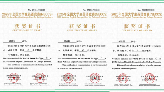 8.2025年全国大学生英语竞赛校级一等奖3项、二等奖10项、三等奖20项