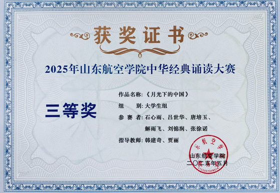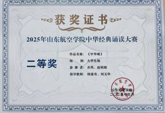 7. 2025年山东航空学院中华经典诵读大赛二等奖1项、三等奖1项