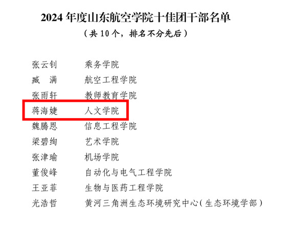 7.蒋海婕同学荣获2024年度山东航空学院十佳团干部荣誉称号
