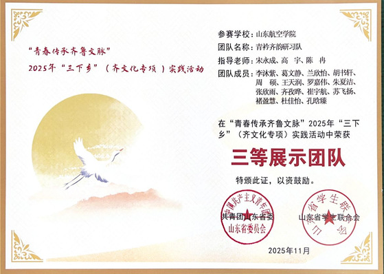 7.人文学院青衿齐韵研习队荣获“青春传承齐鲁文脉”山东省2025年“三下乡”(齐文化专项)实践活动三等奖