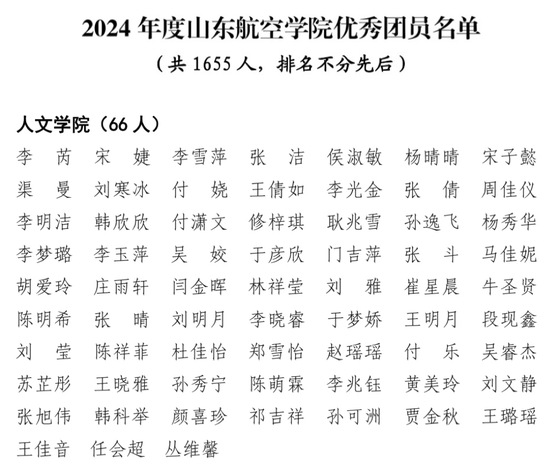 11.李芮等66名同学获评山东航空学院2024年度山东航空学院优秀团员称号