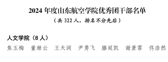8.焦玉梅等8名同学获得2024年度山东航空学院优秀团干部称号