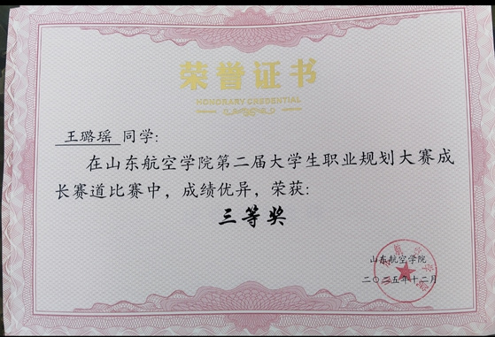 9.山东航空学院第二届大学生职业规划大赛就业赛道二等奖1项、成长赛道三等奖1项