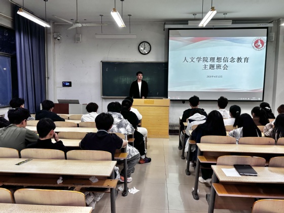 10为深入开展理想信念教育,引导青年大学生坚定理想航向、厚植家国情怀、凝聚奋进力量,4月12日,人文学院于7号教学楼召开理想信念教育主题班会。本次班会由各班班主任主持,人文学院全体学生共同参与。